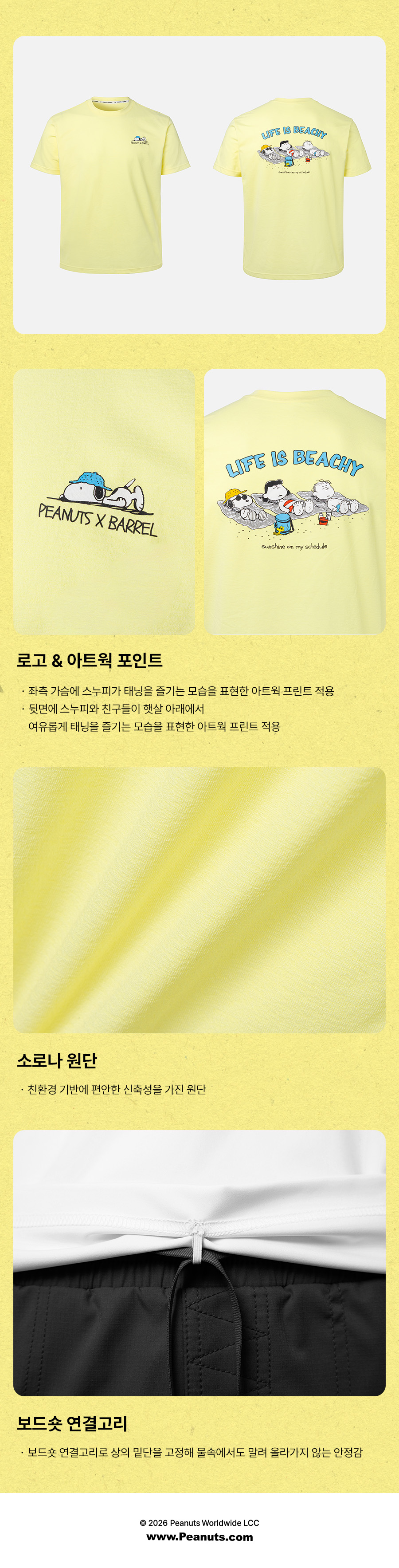 제품을 입고 바닷가나 수영장을 다녀오신 경우, 물 속의 화학성분 및 염분으로 인해 변색이 발생합니다. 땀으로 인한 부분 탈색이 발생할 수 있으니 가능한 한 빨리 수돗물로 세탁하시고 가볍게 두드려서 수분을 뺀 뒤, 직사광선을 피해 그늘에서 건조해주세요.