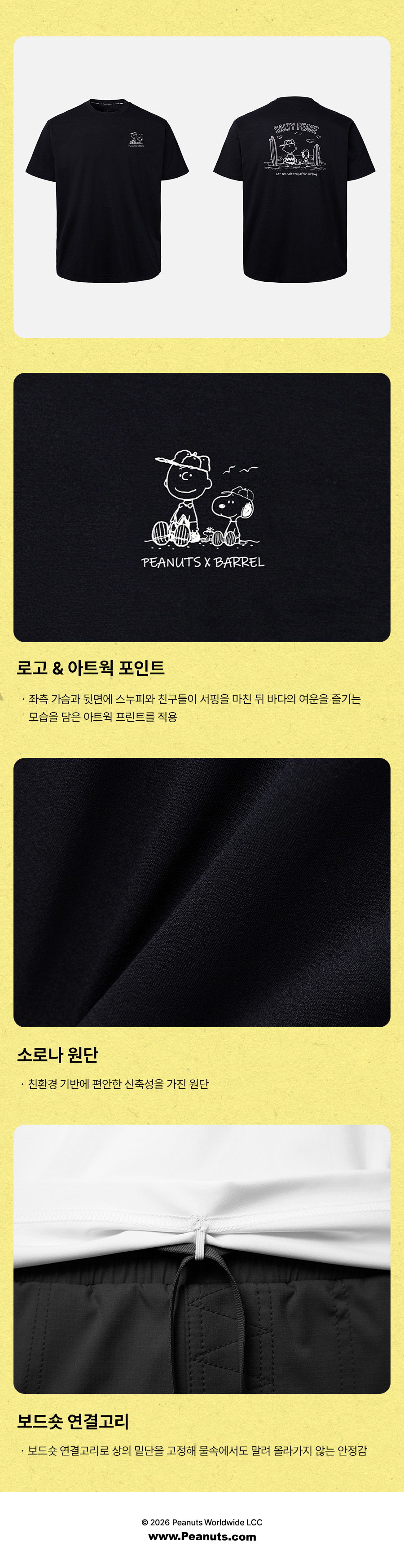 제품을 입고 바닷가나 수영장을 다녀오신 경우, 물 속의 화학성분 및 염분으로 인해 변색이 발생합니다. 땀으로 인한 부분 탈색이 발생할 수 있으니 가능한 한 빨리 수돗물로 세탁하시고 가볍게 두드려서 수분을 뺀 뒤, 직사광선을 피해 그늘에서 건조해주세요.