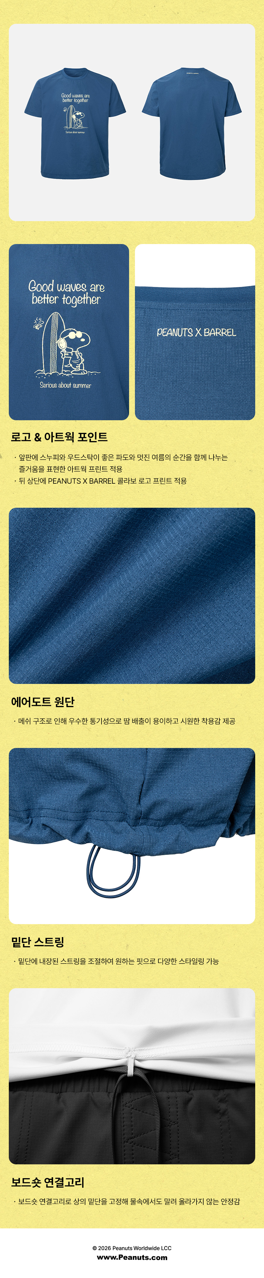 제품을 입고 바닷가나 수영장을 다녀오신 경우, 물 속의 화학성분 및 염분으로 인해 변색이 발생합니다. 땀으로 인한 부분 탈색이 발생할 수 있으니 가능한 한 빨리 수돗물로 세탁하시고 가볍게 두드려서 수분을 뺀 뒤, 직사광선을 피해 그늘에서 건조해주세요.