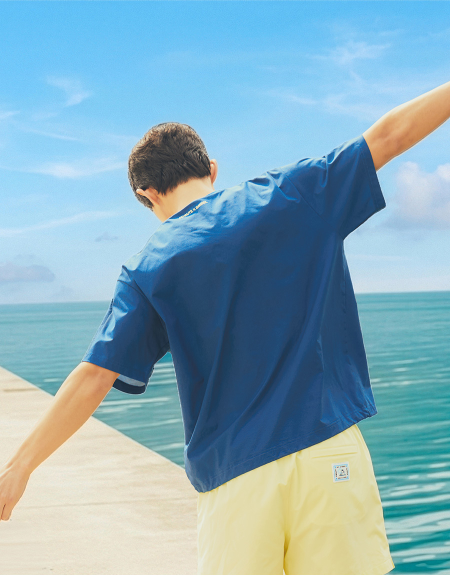 제품을 입고 바닷가나 수영장을 다녀오신 경우, 물 속의 화학성분 및 염분으로 인해 변색이 발생합니다. 땀으로 인한 부분 탈색이 발생할 수 있으니 가능한 한 빨리 수돗물로 세탁하시고 가볍게 두드려서 수분을 뺀 뒤, 직사광선을 피해 그늘에서 건조해주세요.