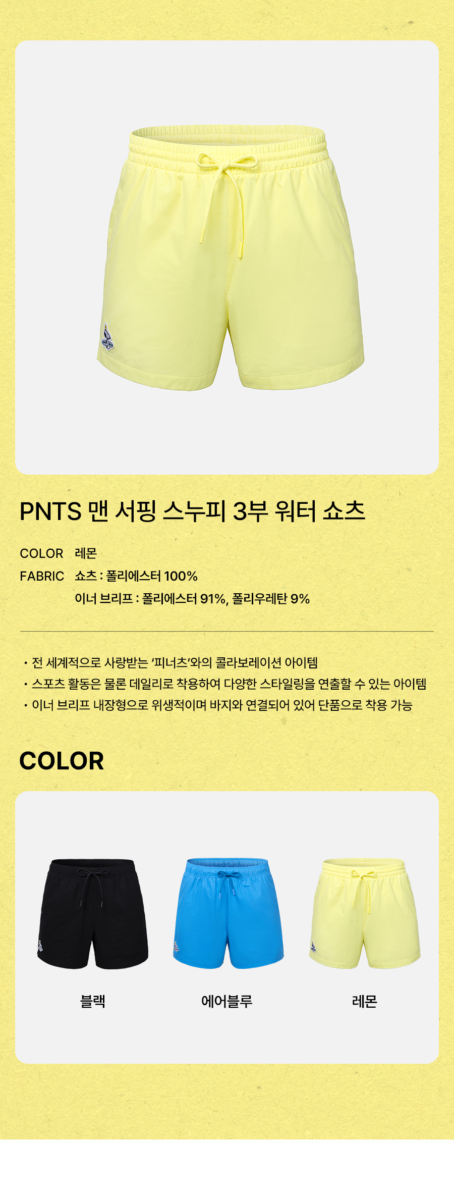 쇼츠: 폴리에스터 100% / 이너 브리프: 폴리에스터 91%, 폴리우레탄 9%