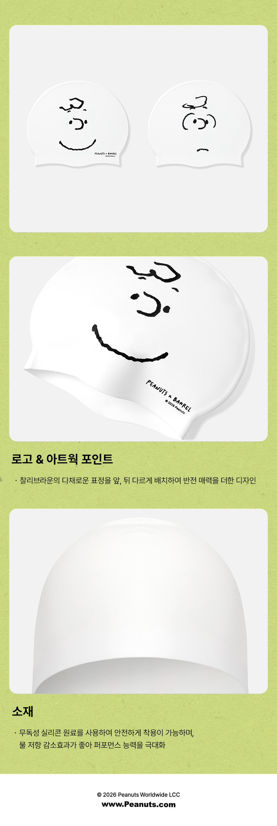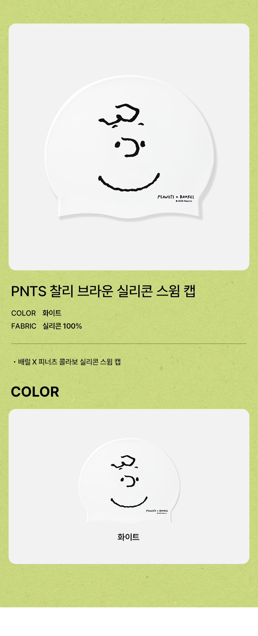 PNTS 찰리 브라운 실리콘 스윔 캡 화이트 (B6SUASC074WHT)
